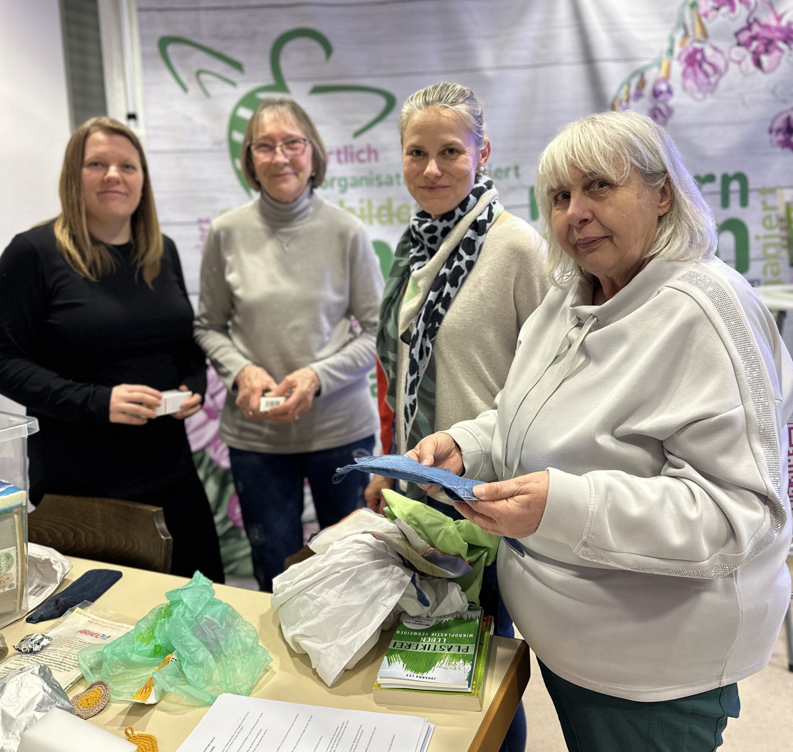 Im März war Brigitte Barthau aus Weinsberg zu Gast. Sie hatte viele nützliche Tipps für den Haushalt mit dabei. Und sie brachte Antworten zur Frage „Wie spare ich Müll und Geld?“. Die Entsorgung von Müll kostet immer mehr, daher ist es wichtig zu wissen, was jeder einzelne von uns tun kann, um der Umwelt weniger zu schaden und für die nachkommenden Generationen eine bessere Umwelt zu hinterlassen. Ein energiesparender Fußabdruck sollte für jede Person und jeden Haushalt wichtig sein. Zum Schluss bastelten die Gäste aus einem alten T-Shirt eine praktische Tasche, die schwere Einkäufe wie Äpfel oder Kartoffeln schulterschonend nach Hause zu bringen.
